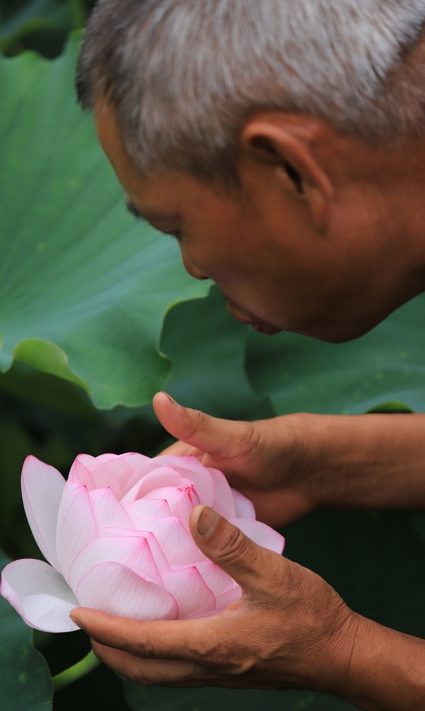 一进入宋立东60亩的荷园里,所有观者都会发出声声惊叹,想过荷花会很美,但从没想过会有这么美!红的似火,灿若朝霞;粉的高洁,形似蟠桃;白的如玉,清云出岫。“这里除了全国的经典品种,多数是我自己授粉杂交培育的”。宋立东还根据荷花的花色形状等特点,给它们起了相当文艺的名字,例如,江南明珠、杏花春雨、静水观音、洁火、红唇、宝莲灯等等。