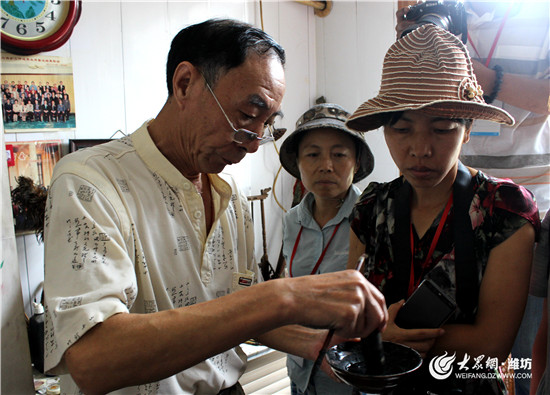 参观完吕氏扑灰年画,活动组又来到同样也是中国扑灰年画世家的石家画堂,潍坊市级非遗文化传承人石建庭也为大家做了细致地讲解和创作展示。