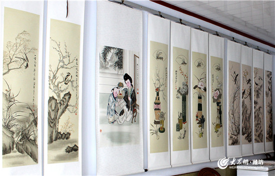 在工作室,大家自由参观部分扑灰年画精品画作,吕蓁立老师为大家详细介绍了扑灰年画的历史、传承与制作工艺。扑灰年画是我国民间年画中的一个古老画种,始见于明代,盛行于清代,手艺均为家传,目前我国仅在高密存有这种年画,主要产地分布在高密北乡姜庄、夏庄一带。扑灰年画是一种扑灰起稿,继以手绘,半印半画的年画。内容多以仕女、胖娃、戏曲人物、神话故事、山水花卉为题材,风格明快,以色代墨,写意味浓,是世界上独特的画种,被誉为“中国一绝”。