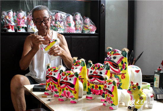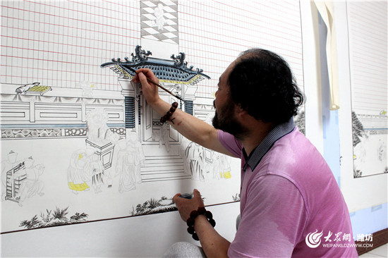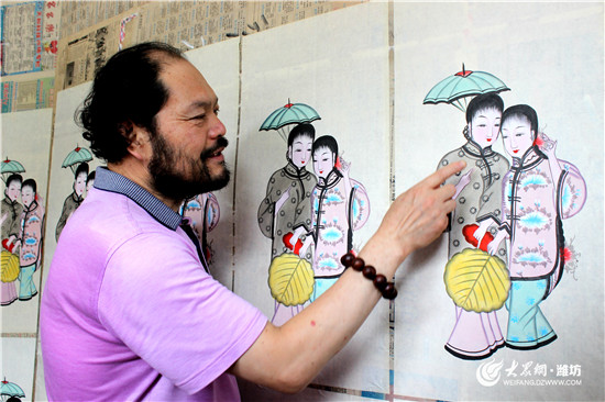 行程第一站,先来到高密市姜庄镇,走进吕氏扑灰年画传习所,拜访高密扑灰年画国家级代表性传承人——吕蓁立。吕蓁立,是高密扑灰年画世家吕氏画派第六代正宗传人,自小喜爱绘画,受家庭熏陶,对扑灰年画情有独钟,并深得祖辈真传,青年时代便成为同行中的佼佼者,是现今最优秀的扑灰年画家之一。