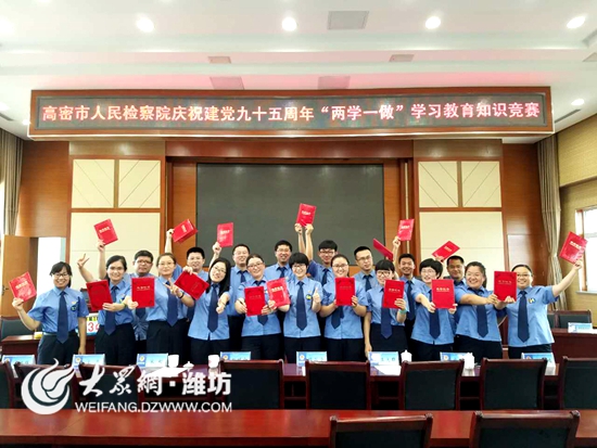 大众网6月21日讯(记者 单姗 通讯员 王培友 张明文)6月20日下午,高密市检察院举办“两学一做”学习教育知识竞赛。经过激烈角逐,弘法沧澜队获一等奖,梦之队、快乐组合队获得二等奖,博行思长队、青春之队和海晏队获得三等奖。获奖选手们表示,将把学习动力转化为工作干劲,做合格党员。