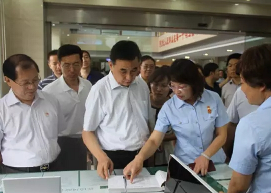在高密法院诉讼服务中心,张成武副院长等领导详细了解了工作流程,询问干警执法办案情况。在大审判庭,与会领导集体观看了繁简分流平台的操作演示,给予了高度评价,对我院开发的民商事繁简分流软件,张成武副院长当即表示,要在全省法院系统推广使用。