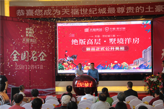 发布会盛典上,高密帝和置业有限公司总经理张振干,天福集团区域营销中心总经理曾景灿共同为天福世纪城全新力作——110㎡-130㎡阔景高层/110㎡-220㎡墅境洋房按下启动球,并宣布新品排号预约正式开始,顿时现场内外礼炮锣鼓齐鸣!