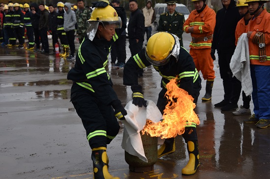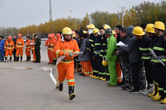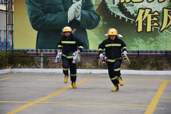 此次比武活动共分为一人两盘水带连接、用干粉灭火器扑灭油盆火、着战斗服携带灭火毯扑灭液化气罐火灾、连接室外消火栓射水打靶操、着灭火防护服30米跑、百米负重跑等6个比武项目。比武过程中,裁判员严格按照项目操作标准进行评判,参赛队员斗志高昂、奋力拼搏。整个比武活动在紧张、激烈的氛围中进行,参赛队员充分发挥精诚合作的精神,快速、熟练地完成竞赛项目,整体赛出了水平、赛出了风格。