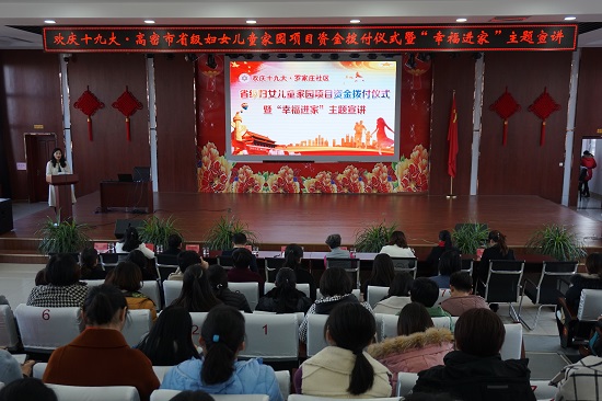 大众网12月9日讯(记者 单越 通讯员 杨桢桢 何晓娜)12月8日,高密市妇联在罗家庄社区5楼会议室举行欢庆十九大·罗家庄社区省级妇女儿童家园项目资金拨付仪式暨“幸福进家”主题宣讲活动,高密市妇联主要领导、朝阳街道相关领导出席会议并讲话。各镇街、村居妇联主席,市直妇委会主任,志愿者协会代表和妇女健身协会会员共计200余人参加了活动。