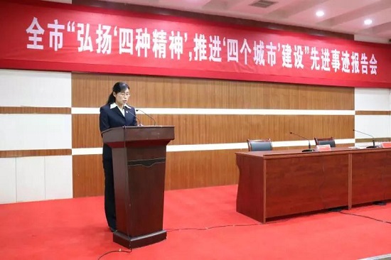 大众网12月15日讯 (记者 荆小泷 通讯员 彭宏)12月14日上午9:00,高密市“弘扬‘四种精神’推进‘四个城市’建设”先进事迹报告会在会议中心一楼会议室举行。高密市中医院妇科主任刘淑兰代表卫计系统做了题为《大医精诚 医者仁心》的事迹报告,讲述了她主动弘扬和践行“担当进取、勇争一流,改革创新、敢为人先”精神的动人故事。