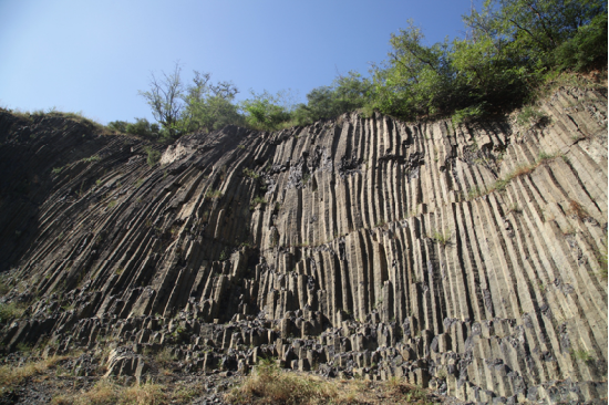 经山东省地质科学研究院勘测,昌乐县内共有古火山84座。火山群内主要是玄武岩岩栓,岩栓是当时火山喷发时,岩浆喷出地表冷却凝固而形成的,这里的玄武岩岩栓有个特点,大多是五棱或六棱型的岩柱。当时火山喷发之时,碱性的玄武岩流沿几十座火山喷涌而出,形成万箭齐发、气冲云霄的壮观画卷,受后期地壳运动影响,原生的火山口已经被逐渐剥蚀,现存的火山岩柱条理清晰、层序分明,有的还呈辐射状,向上收拢向下散开,形象地展示了大自然的鬼斧神工。