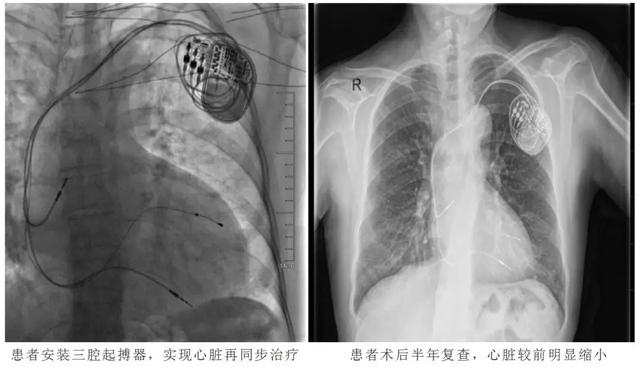 医院为潍坊地区能独立完成CRT的少数医院之一,近2年,完成CRT手术5例,患者恢复均良好。比如57岁的邢大姨因“发作性胸闷憋气3年,加重半年”入院。患者3年前因胸闷憋气,于外院诊断为“扩张型心肌病”,3年来患者胸闷憋气进行性加重,多次因“心衰”住院治疗,药物治疗效果欠佳。入院心电图示窦性心律,完全性左束支传导阻滞,QRS波时限0.20s。心脏彩超:EF14%,左室舒张末内径71mm。心内二科主任李杰带领医疗团队分析患者病情,具有心脏再同步(CRT)治疗的指征,患者及家属同意后予植入三腔起搏器,实现心脏再同步,以改善心功能,术后患者胸闷憋气明显减轻,心功能由4级恢复到2级,并且心脏明显缩小。