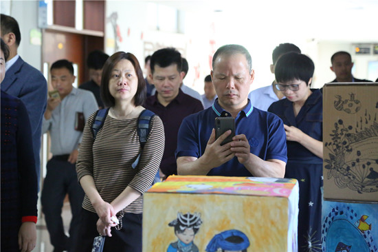 考察团一行首先参观了学校的“和雅”文化长廊、德育展室等,听取了相关人员对“和雅”文化、学校超市课程、微德育课程、全链接课程、创新课程的讲解,并在一楼大厅观看了学校大型红剧的排练,对同学们的表演赞不绝口。