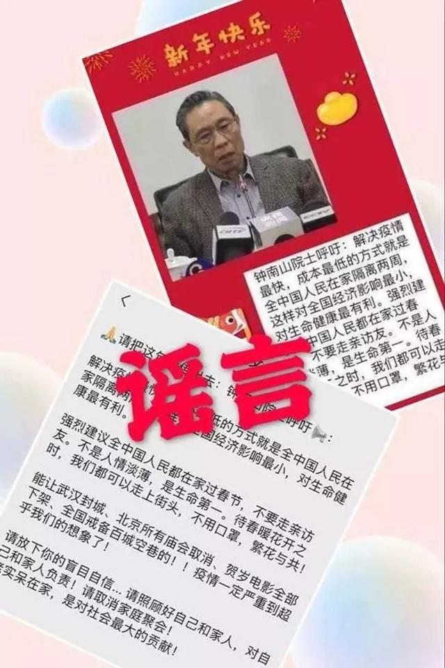 谣言一:钟南山院士建议“全中国人民在家隔离两周”