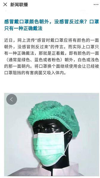 近日,网上流传“感冒时应将有颜色的一面朝外,没感冒则反过来”的传言。而实际上口罩只有一种正确戴法,即有颜色的一面朝外,白色或浅色的那一面朝内。