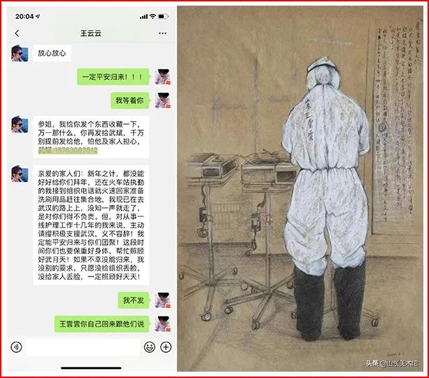 春节前夕,武汉新冠肺炎疫情爆发,王雲雲第一时间响应医院号召,主动请缨报名参加驰援湖北的医疗救援队。初一下午,正在火车站值勤的她突然接到紧急赴鄂通知,她赶紧通知家里的丈夫准备好行李,匆忙奔赴战场。面对不知情的湖北疫情,赴鄂的路上她给家人留下了“诀别信”。