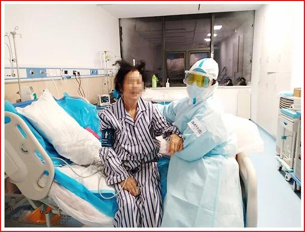 在王雲雲和团队成员接收的第一批重症患者中,有一位特殊的患者,她是一名退休十年的同济医院的老护士长。从入院时携带“我不抢救”字条到现在逐渐恢复健康笑对生活,王雲雲在这场“抗疫”战斗中逐渐与她结下了深厚的“母女情”。