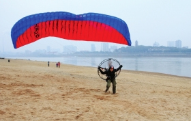 “目前从整个湖南的情况来看,株洲开展滑翔运动的条件最好。”运动员出身的“曾大虾”去过湖南多个地方进行滑翔。“株洲湘江边上有沙滩,适合低飞,另外株洲市体育中心足球场附近的那片斜坡,应该是目前湖南最适合滑翔伞训练的场所。”