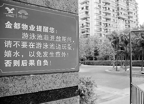 胡女士告诉记者,这个游泳池只在每年的7月和8月对小区业主开放。开放的时候,泳池边会有救生员,“但是昨天这个泳池并没有对外开放,两个孩子是偷偷跑进去的。”