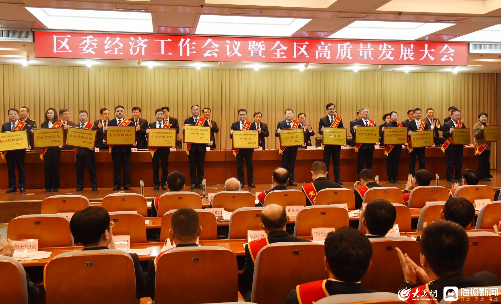 2月1日下午,潍坊市寒亭区召开区委经济工作会议暨全区高质量发展大会,安排部署新年拼经济、谋发展任务目标,并邀请108位企业家参会,对优秀企业家和先进部门、单位进行表彰,动员全区上下以等不起的紧迫感、慢不得的危机感、坐不住的责任感,全力以赴拼经济、撸起袖子加油干!