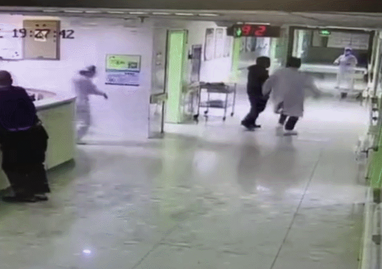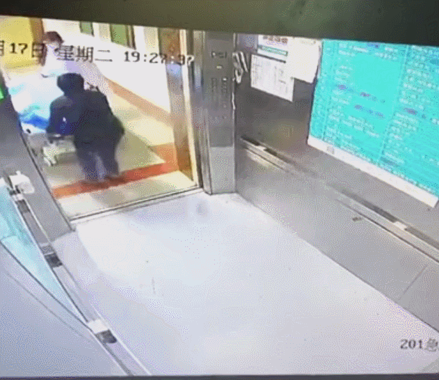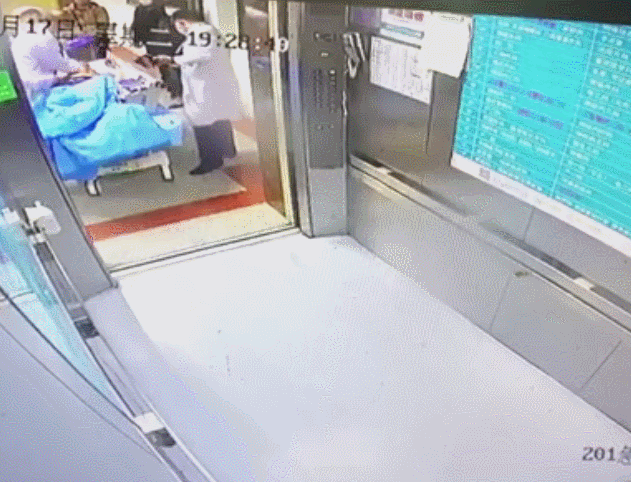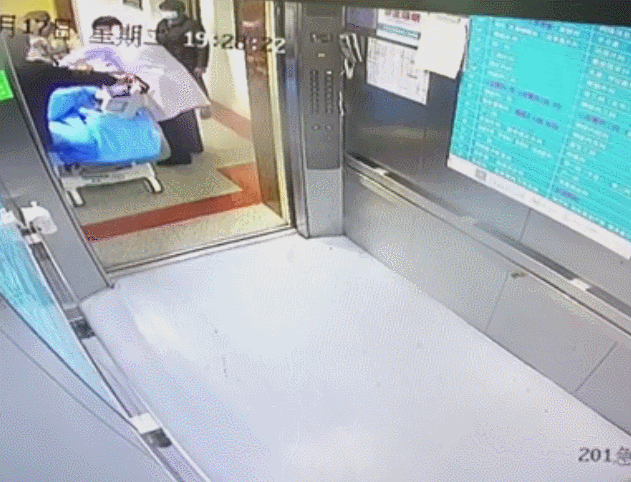 走廊及电梯监控记录下惊心动魄的“生死67秒”抢救过程。