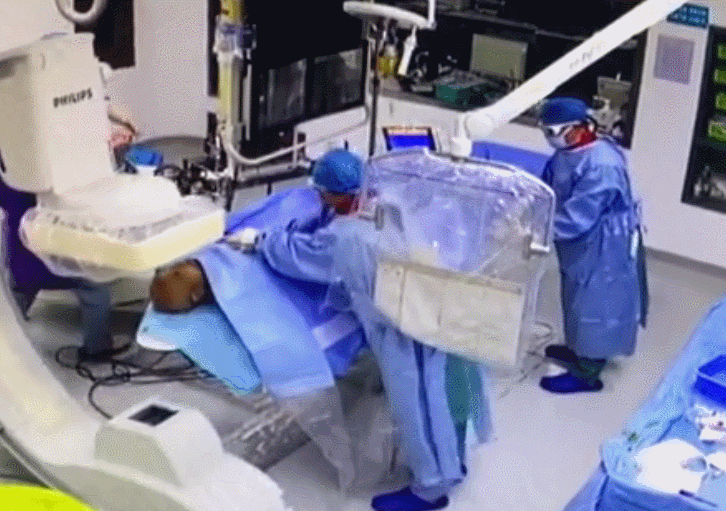 在送往介入手术室后