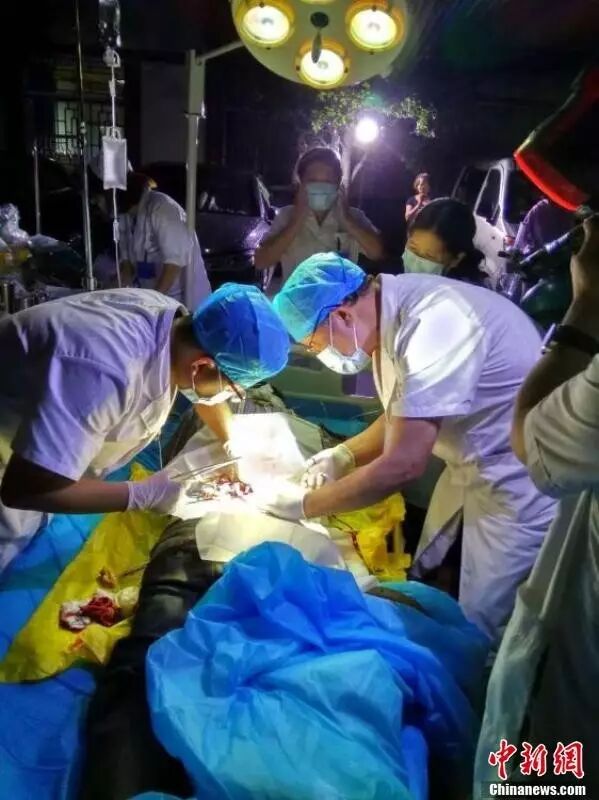 医生们在医院大门外的坝子头搭起临时手术台,抢救伤者